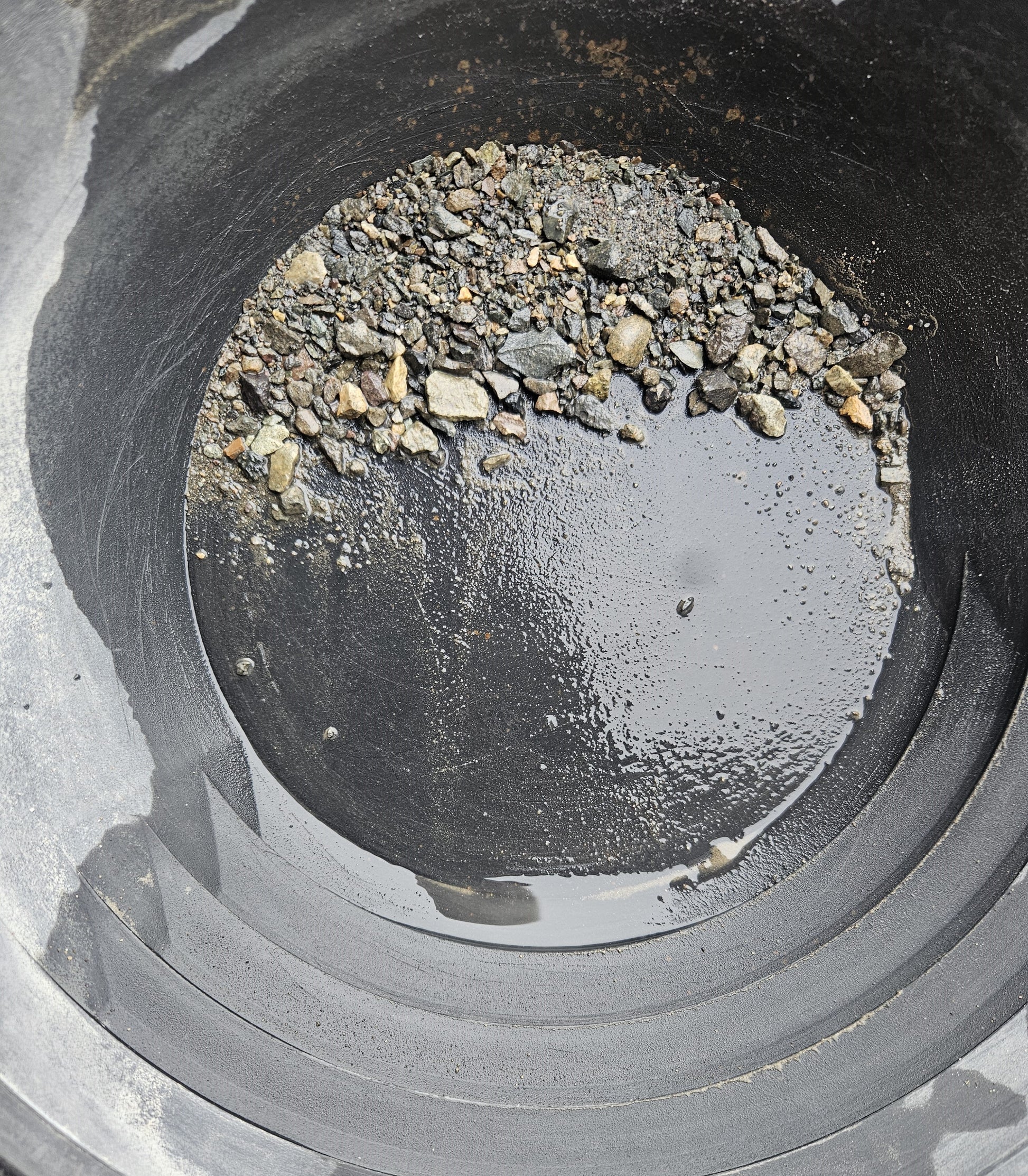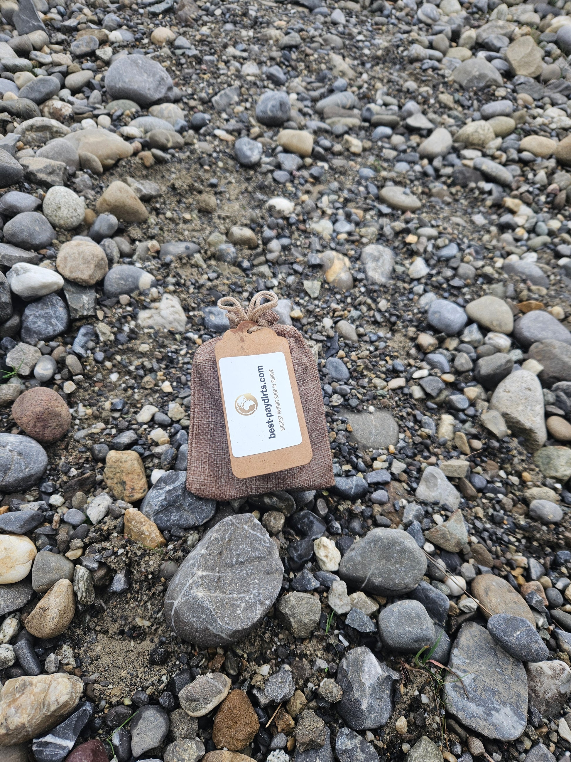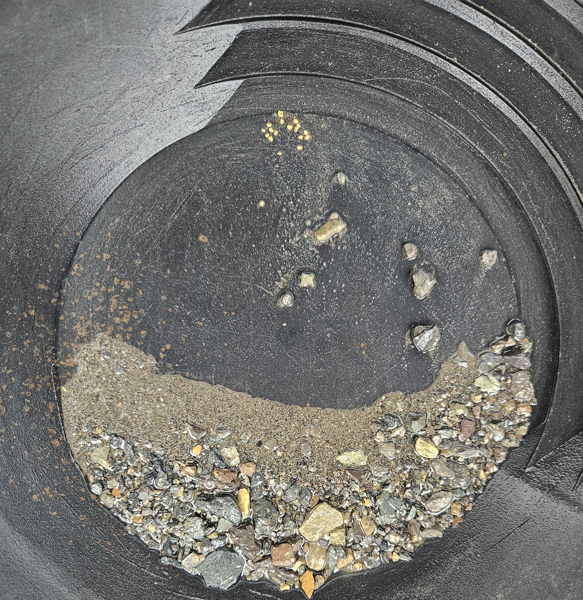 Jeder Paydirt enthält 0.25 Gramm Gold. Die Goldkörnung variiert zwischen 12 und 40 Mesh. Das Gold für diesen Paydirt stammt aus Colorado und wird aus einer der Kiesgruben am London Mountain gewonnen. Es handelt sich nicht um typisches Flussmaterial, sondern um eine Art Kies, der ein anderes Wascherlebnis ermöglicht.