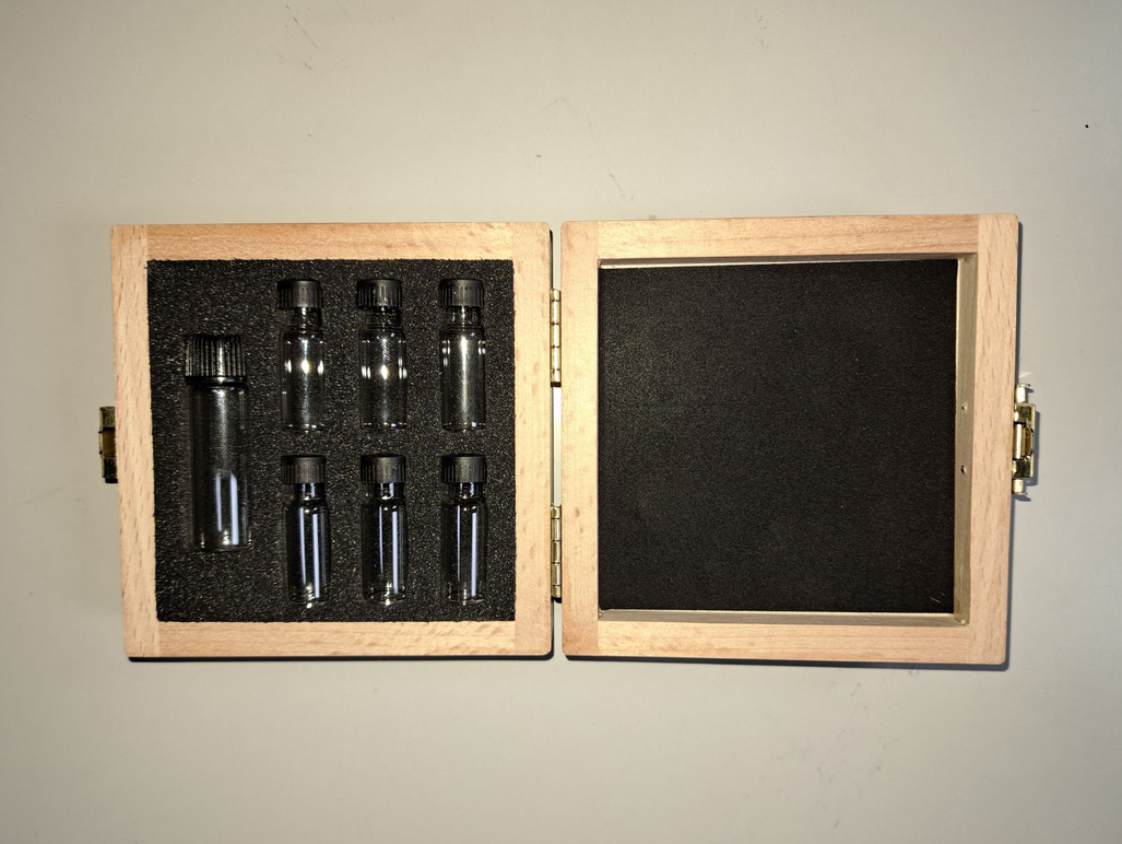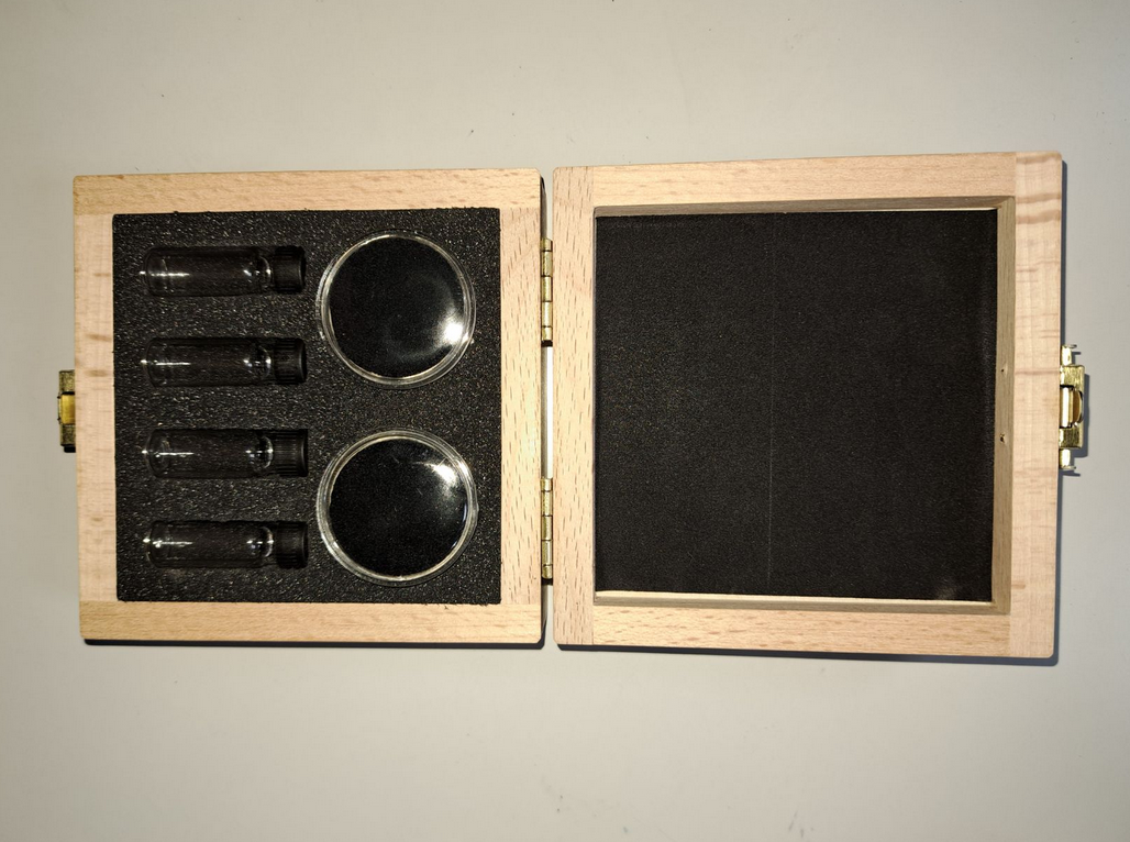 Qualitativ hochwertiges Holzkästchen mit Schaumstoff und Samt-Einlagen für Waschgold und Goldnuggets.